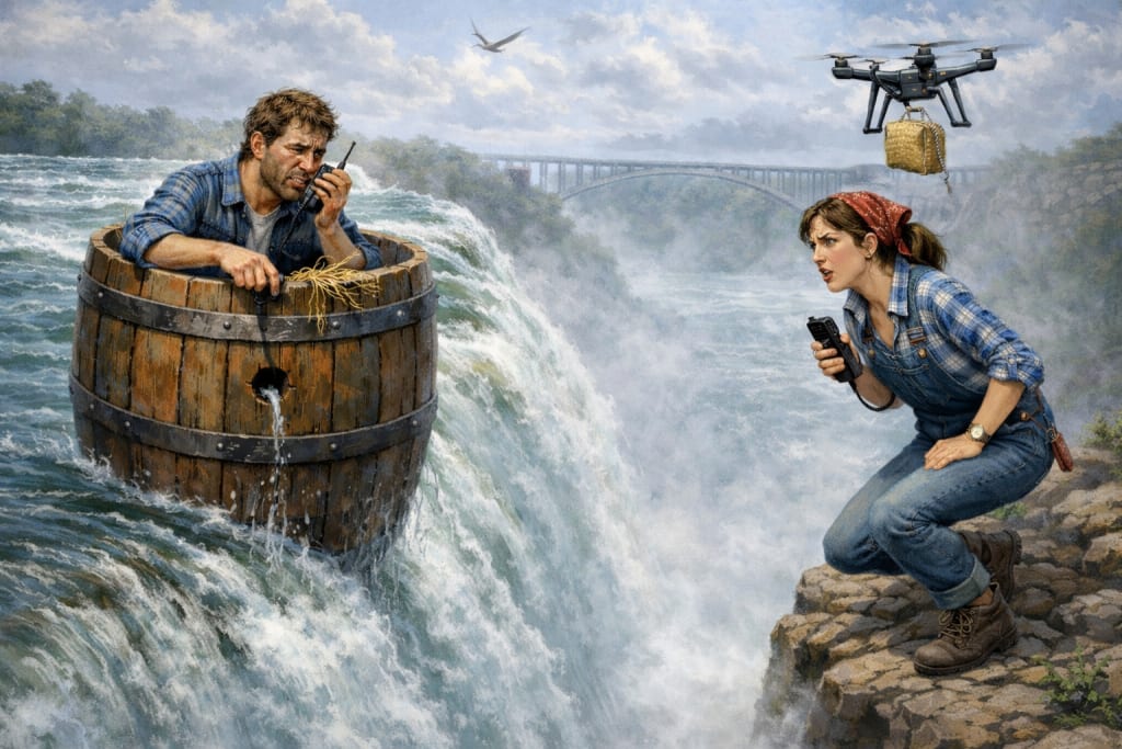 He was later discovered in the back seat of an NYPD squad car along with his sister, Liza. As it turns out, it’s a crime to attempt to ride a barrel, a bucket, or any container over the falls. Shockingly, as smart as Liza claimed to be, she did not know this fact. She didn’t do any research on the subject. She researched buoyancy. She researched wood density. She researched cushioning material. But she never researched legality.