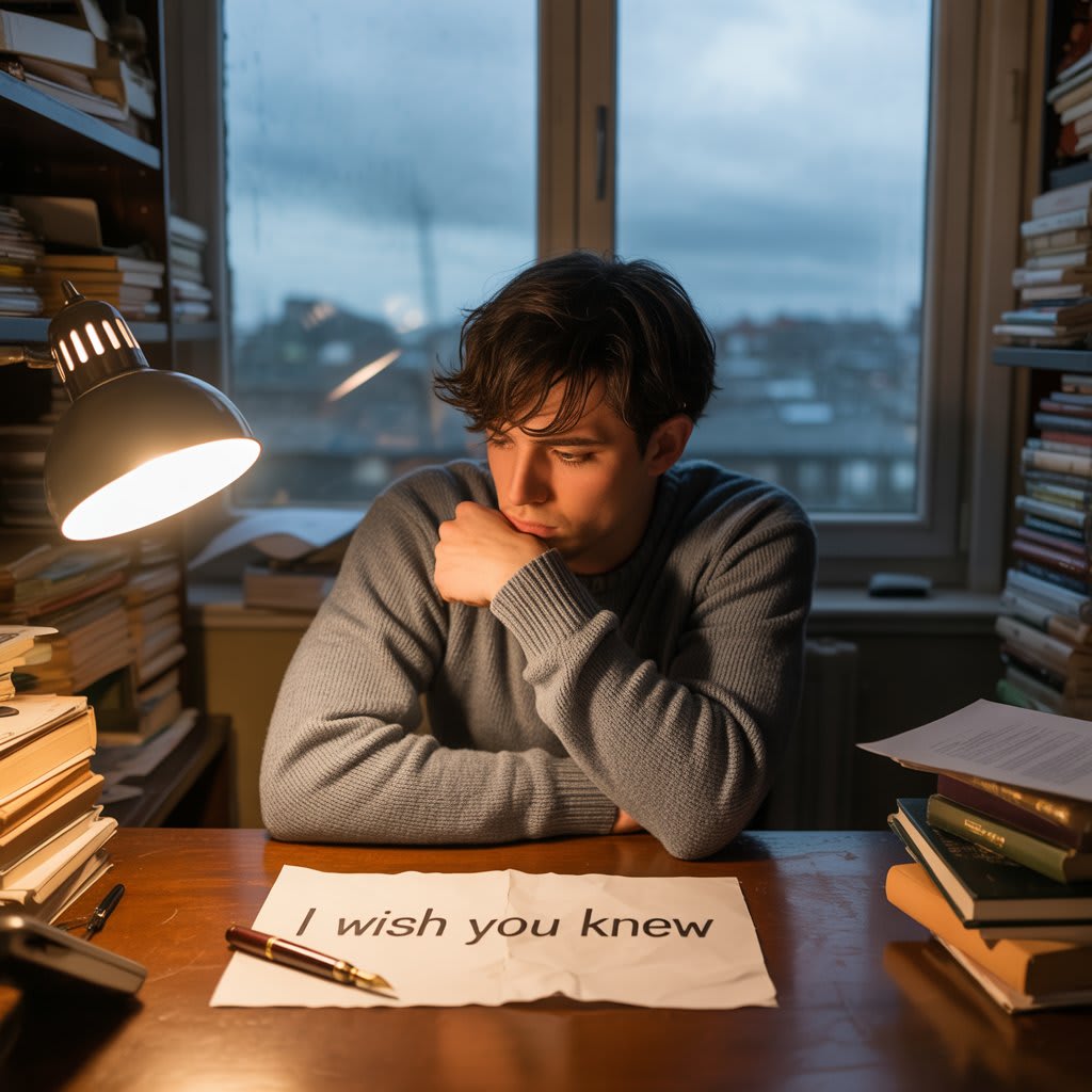 A reflective monologue-style essay about all the things you should have said to someone — but didn’t. A piece about regret, vulnerability, and closure without response.