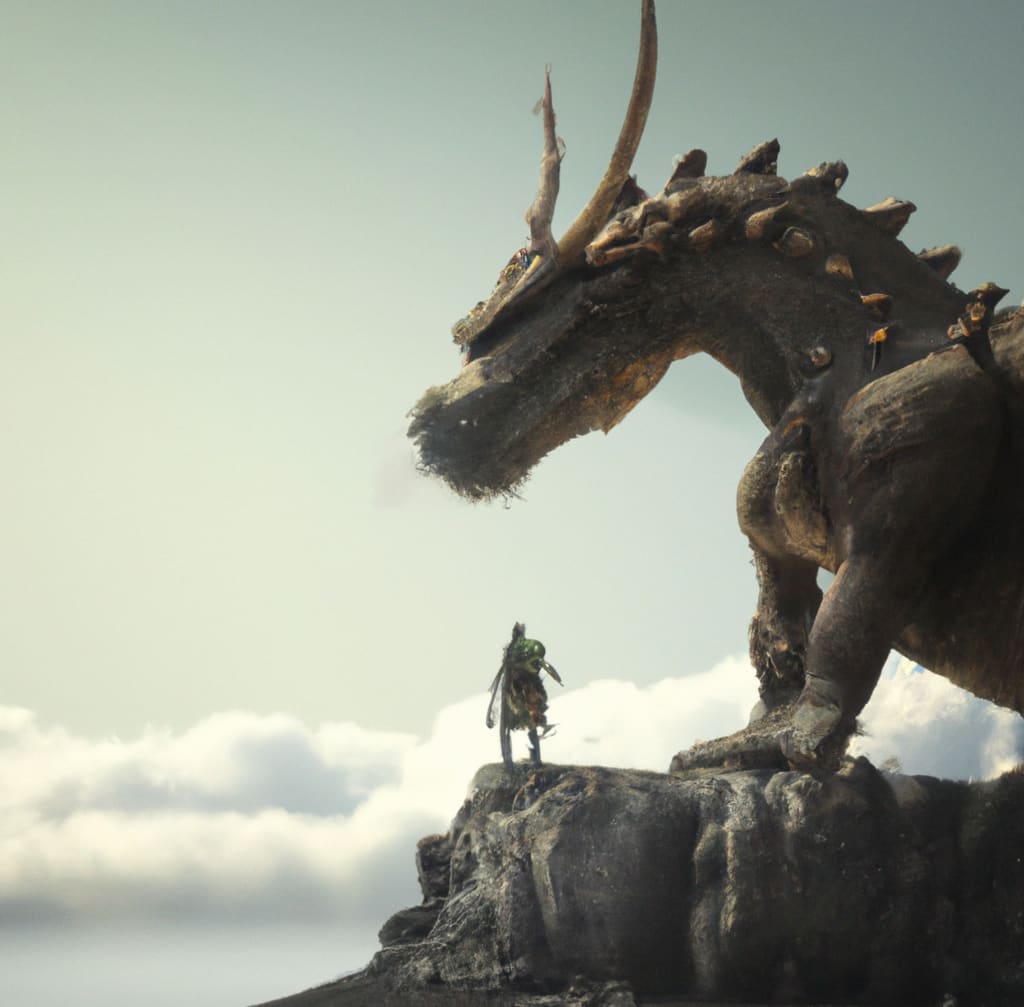 The portal closes behind the warrior, and he looks up to see the dragon staring back at him. A brute of a man, eyes blue as an ocean staring into the grey, watery eyes of an old dragon until finally, the dragon lets out a long breath. The warm air was blowing in the man’s direction along with volcanic winds, the smell of sulfur hanging in the air, and viscous flows of lava all around. The two stared at one another for what seemed like an eternity, silent words upon hushed lips. Finally, the dragon spoke.