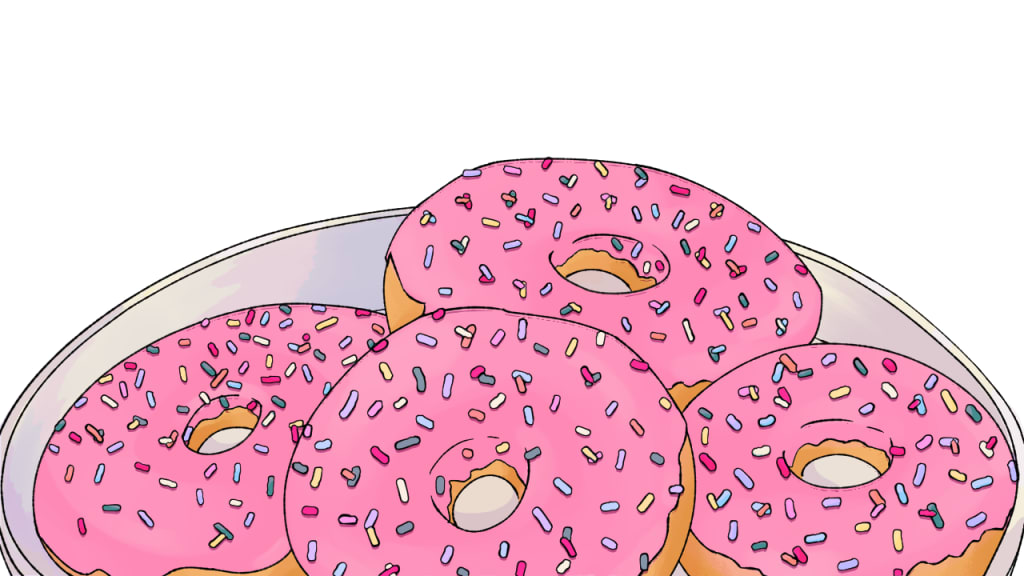 “Here,” Cass interrupted her by handing her a freshly baked donut, with pink frosting and colorful sprinkles on top.