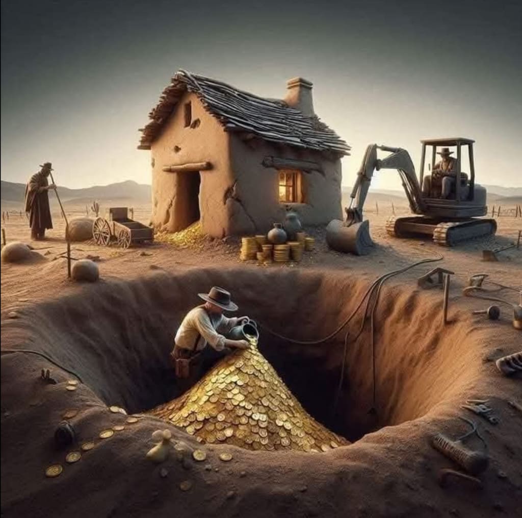It didn't take the man who spent his first coin on a shovel and a hoe, and then bought a backhoe and land, very long to strike a fortune.