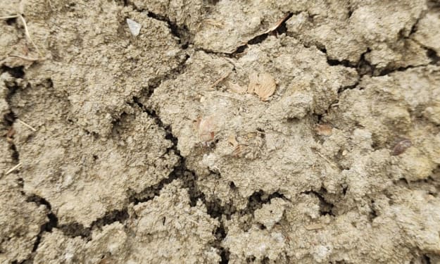 Dry earth crunched under their footfalls. The son tried not to step on the hard desolate cracks that split the earth like a never ending egg being hatched. When he mis-stepped and tripped over his own ankle he stumbled forward and fell to knees catching himself with the base of his palms. When mother looked back she merely smiled and held out a hand to help him up. She didn’t scold him or say anything for that matter. In fact, she rarely said anything while they walked. It had been that way as long as the son could remember. When she turned her back to him and continued, he went on skipping over the dry cracks of earth.
