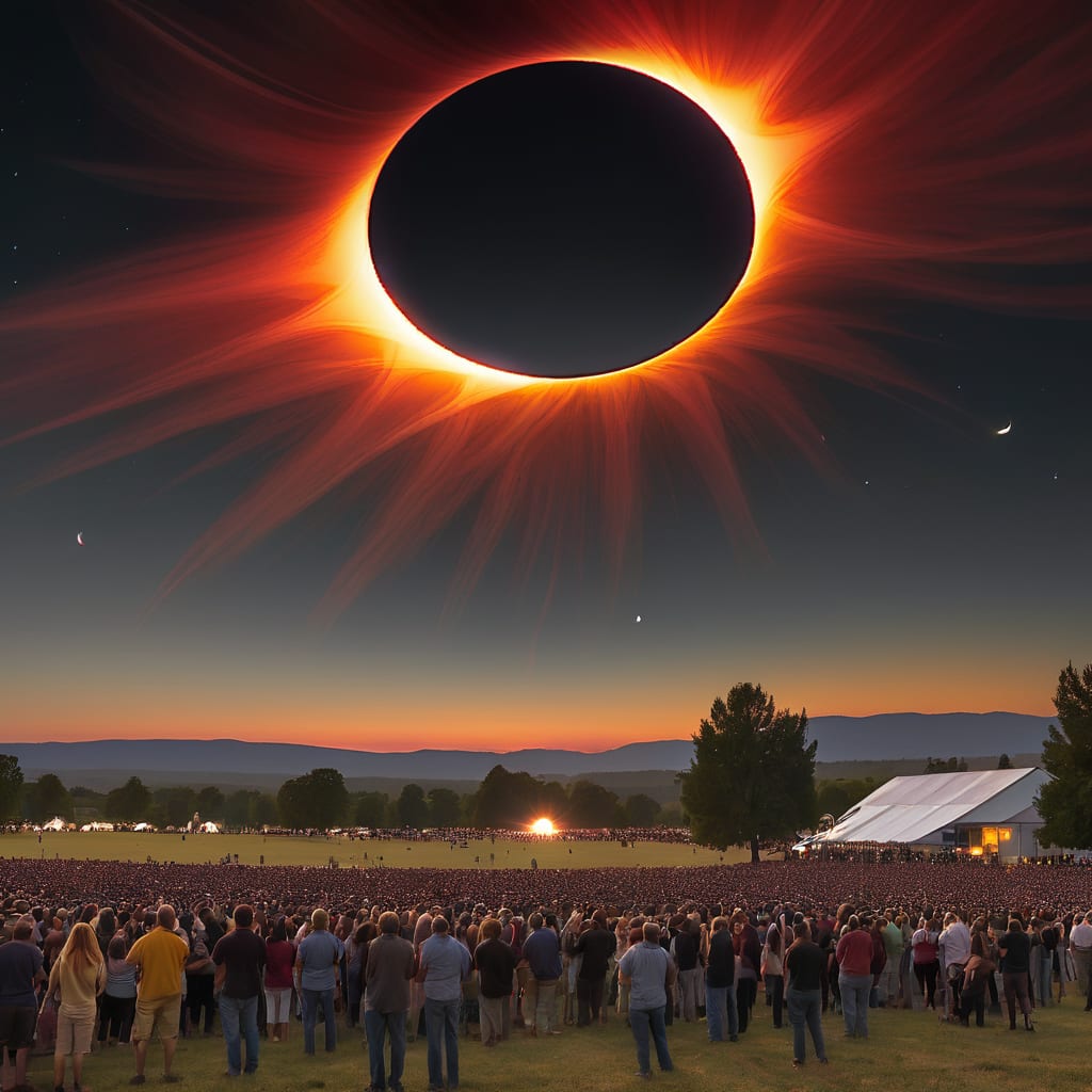 Then, with a breathtaking swiftness, the light vanished. The day became an abrupt night. A gasp escaped Amelia's lips. There, in the inky black canvas of the sky, hung a celestial jewel – the corona, the sun's faint outer atmosphere, ablaze in a fiery halo. It was a sight that defied description, a corona of pearly white punctuated by wispy, crimson streaks.