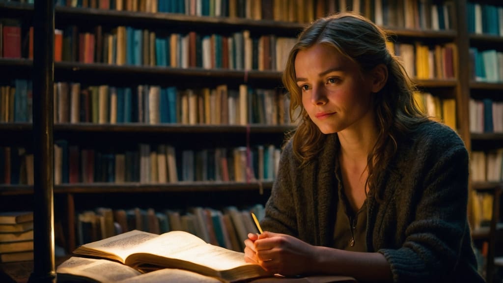 One misty afternoon, as the town embraced a soft drizzle, Amelia discovered a worn journal on the doorstep of her bookstore. Its pages, weathered and stained, held a collection of handwritten poems that seemed to breathe with the pain and longing she kept hidden within herself. The journal, a forgotten relic of someone else's heartache, became a mirror reflecting her own unfulfilled desires.