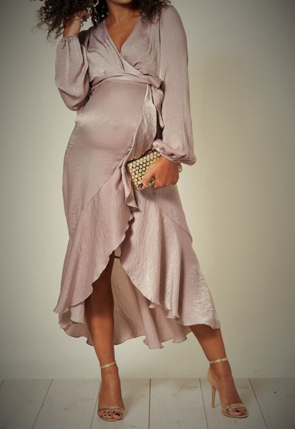 “I really should stay up here and watch them” Bria states as she stands looking at herself in the full-length mirror, her pregnant figure covered by a thin layer of dusty peach satin material.
