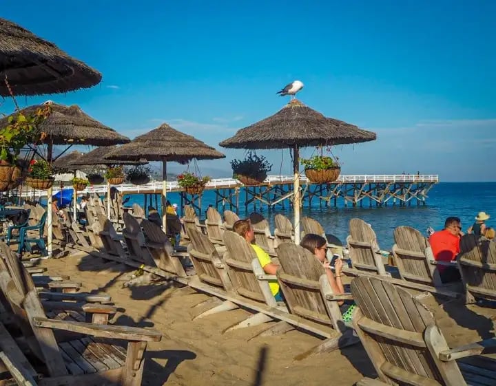 There was a line of chairs at the front of the cafe, but they were out in the sun, and the second last thing I wanted was a case of sunburn to go with the sand in my hair. I’ve been there, and it’s no fun.