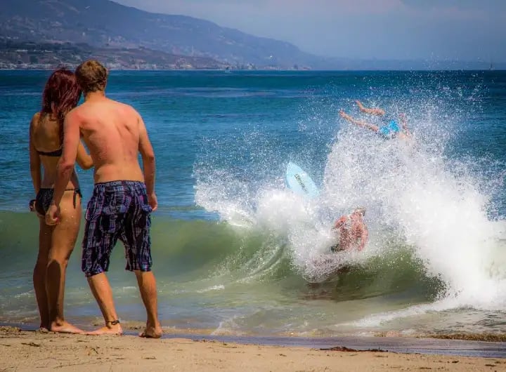 I’m not a bad swimmer, and I took a few strokes up and down in the calmer water further out. The waves lifted me up, the water flowing like cool silk along my body, and every time I lifted my head to take a breath, I almost had to pinch myself. This was Malibu, I was splashing through the Pacific, I was living in a postcard.