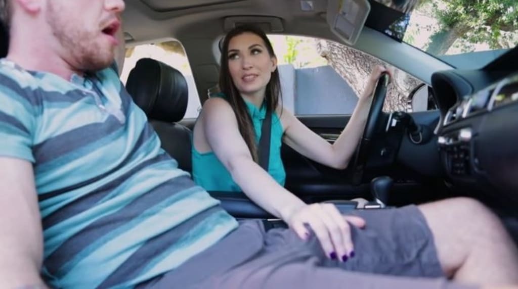 The pair go to the clinic only for Kyle to come out and apologise to his stepmom because he couldn't ejaculate. While Angelina's disappointment is clear, she plots on the way home an alternative to getting what she wants. On arriving home, she promises Kyle that he must keep her suggestion a secret from his father. Kyle is naive, but it's clear what Angelina has in mind when she starts rubbing his penis. The two remain in the car as stepson Kyle receives a blowjob from his stepmom. Naughtily, Angelina puts her finger to her lips while pleasuring Kyle's cock.