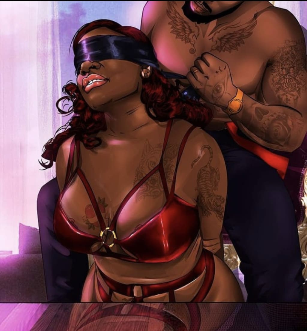 Doing what I was told I pull out an eye mask that would serve as the perfect blindfold for the occasion! I walk over to her, not saying a word, I slip the blindfold over her eyes, grabbing her tightly, I kiss her deeply! Our tongues intertwining! I grab her hands and guide her to the bed, sitting her down, I instruct her to lay flat on the bed, face up! I lean down and whisper in her ear, "Will we be having company join us tonight!" She whispers back, " I have you all to myself tonight! I like to be dominated, unlike my counterpart! When she is around, prepared to be completely and utterly dominated! For tonight, you will be the dominant one, now have your way with me in every way possible! Without saying another word, I began my mission. I stood there in jeans and no shirt, deciding where to begin, I started from the bottom and worked my way up, Starting with her toes, gently sucking on them, I could hear her soft moans from pleasure! My hands massaging her thighs , and my lips and tongue following them! As my lips begin to massage her silky skin below her waist my hands go higher massaging her stomach and breast! Her body squirming from pleasure, my mouth reaches the wetness between her legs, I begin to massage her pussy through her soaking wet pussy! The wetter she got the louder her moans! I had to taste her, pulling her panties to the side, seeing her wet lips, I begin to suck on them, finding her clit with my tongue, flicking it on her clit rapidly, sliding a couple of fingers deep inside of her, in and out my fingers drive inside of her wetness as I suck vigorously on her hard pearl, bringing her to the brink of ecstasy, when I stop abruptly, cheating her out of the orgasm that was in her reach, she gasps for air and ask," Why did you stop?! SHIT that was amazing!" I pushed her back down on the bed and told her to shut up and do as she is told! She bites her bottom lip and says,"Yes sir!"