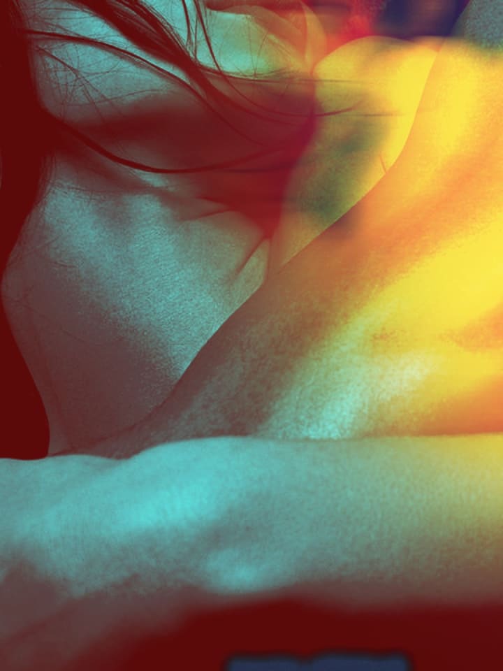 Feverish and horny, I initiated a blowjob to which startled him awake. And here we are... my feeling betrayed for letting him in a little, and realizing he was the date that "stood me up" when in fact he was with me the whole time.