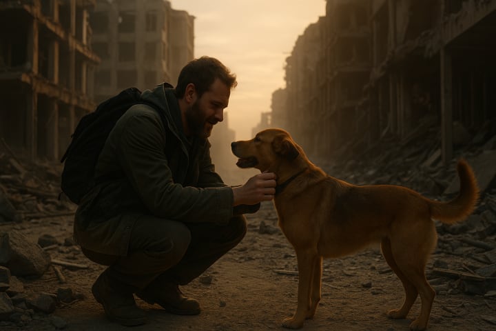 "Day Four: In the ruins of silence, a single bark reshaped survival into companionship."