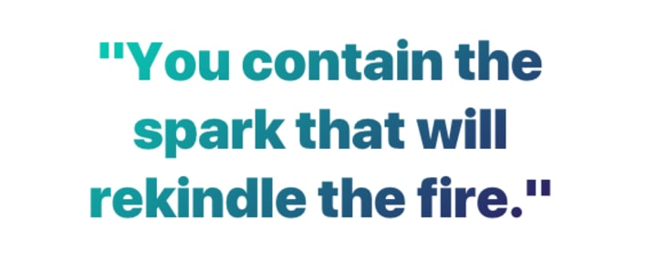 The wording is absolutely fascinating, and — again — it's ambiguous and mysterious enough that I can believe this dialogue is really from the film. Looking back at A New Hope, that 'new hope' was a person — Luke Skywalker himself. Here, though, the dialogue doesn't say that Rey is the spark that will rekindle the fire. No, instead the dialogue says that she contains the spark within her.