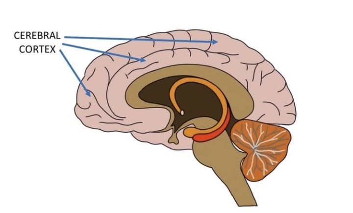 In the human brain you have the forebrain. It consists of the cerebrum, thalamus, and hypothalamus (part of the limbic system). The Forebrain is also known as the Cerebral Cortex.