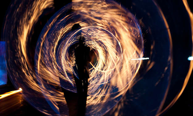 I was being led through a long silver hallway. It was like I was sleepwalking. I had no control over my body. The floor felt cold beneath my bare feet as my body moved farther down the corridor. My footsteps echoed as I walked along the metal corridor, but they weren’t the only ones. Behind me I could hear the heavy clanking of metal against metal. I started to panic. I couldn't turn my head to see who was there and I couldn’t stop myself from walking. What was happening? Who was this person?