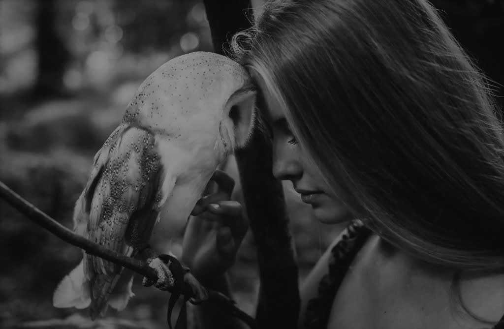And as if being summoned by her thoughts, a golden barn owl fluttered from the trees somewhere and landed upon her shoulder. The bird nibbled her ear in welcome.