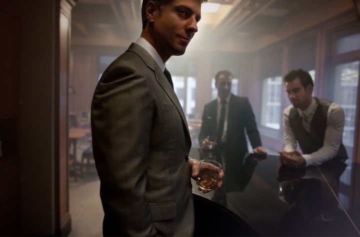 Just then he snapped his fingers and everything stopped. The bartender mixing the drinks froze. Even the drink itself froze as it was being poured into a small glass. It was as if time itself stood still.