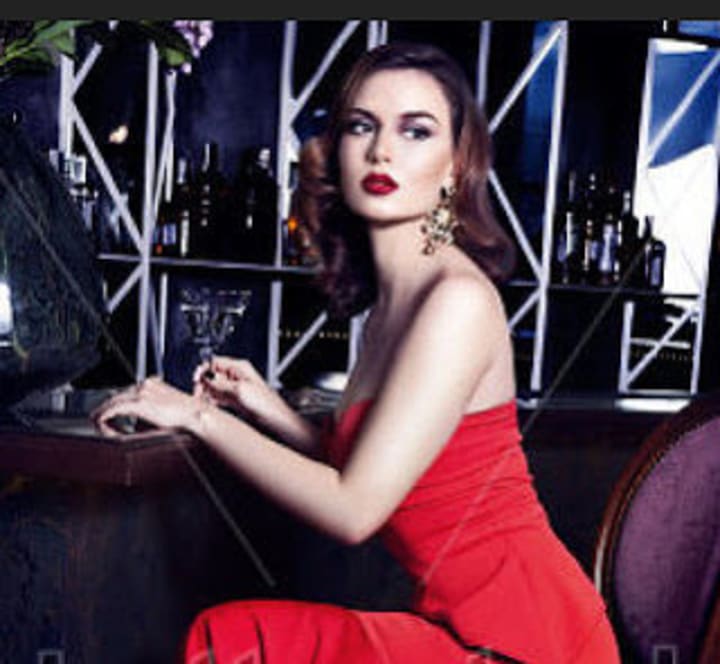 The odd man pointed and we both turned gazing upon a rather attractive young woman dressed in a scantily red dress. She's on her phone and giggles slightly.
