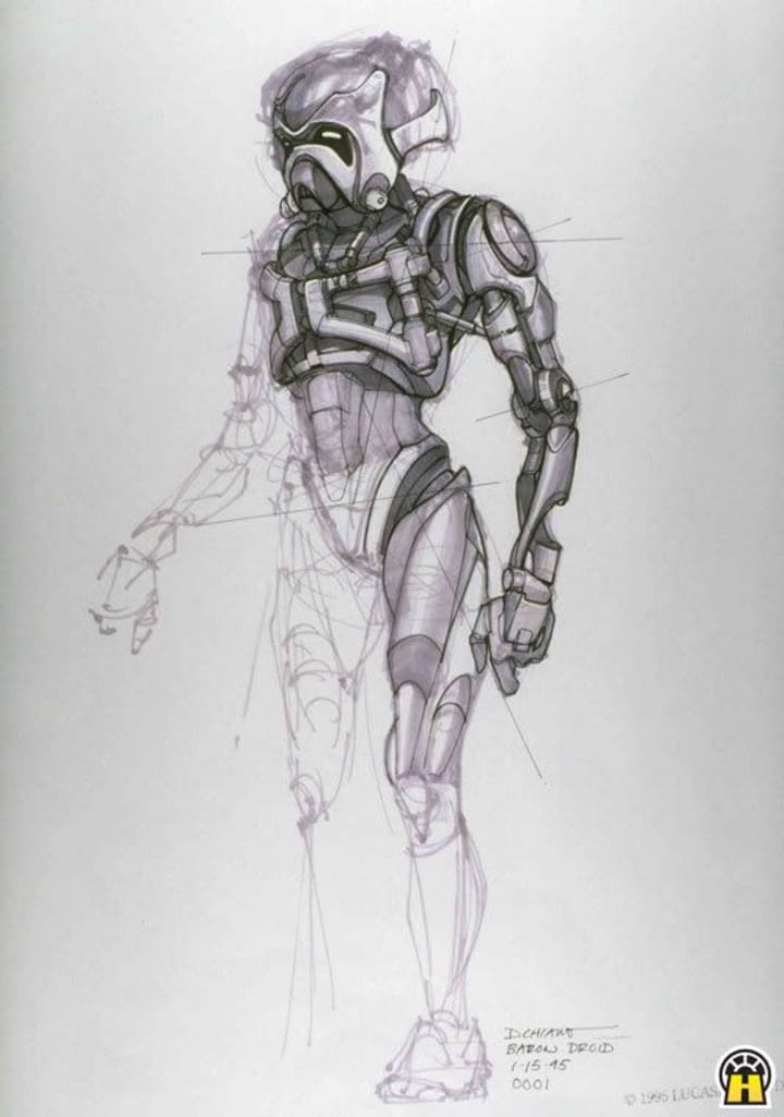 On January 15, 1995, Chiang started working at Skywalker Ranch. On that day, Lucas asked him to draw a robotic stormtrooper for Episode I, which would be titled The Phantom Menace. Initially, he took that prompt and ran with it exactly as it sounded, but it was not what Lucas wanted. Chiang was ready to just do original trilogy-inspired designs, but then found it a bit daunting being told to forget the familiar and try to lay a foundation for what the evolution would be between Episode I and Episode VI.