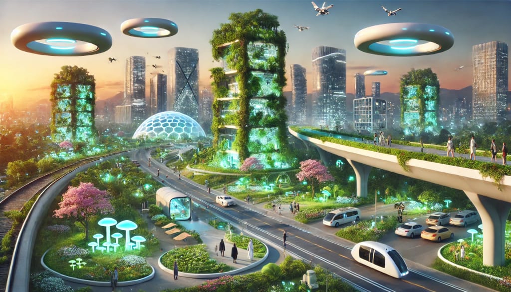 The year was 2050, and the world had become a place both familiar and extraordinary. Cities shimmered with bioluminescent light, powered not by fossil fuels or even traditional solar panels but by genetically engineered algae embedded into every surface. Roads were relics of a bygone era, replaced by networks of autonomous drones and maglev transporters weaving silently through the skies. It was a world on the brink—not of collapse, but of unprecedented transformation.