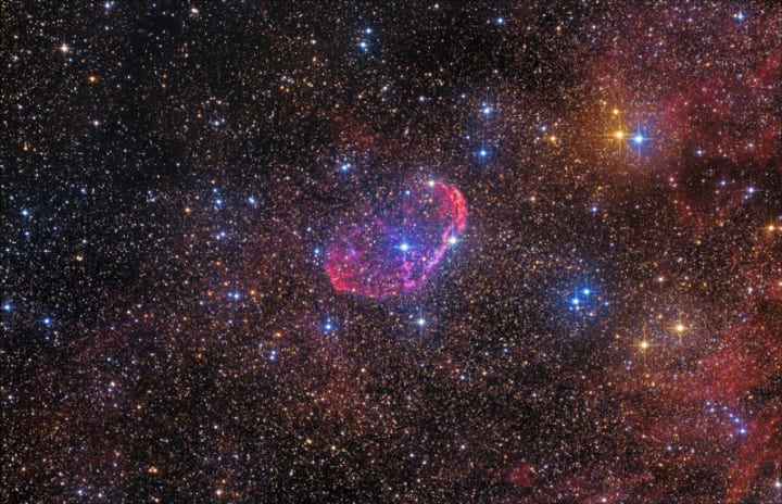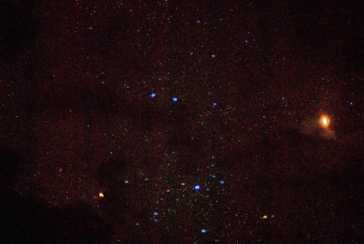 According to current scientific thought, the universe is comprised out of three basic parts: 5 percent physical matter of the kind that comprises planets and stars; 26 percent dark matter that appears to be governed solely by gravity and made from a particle that it hasn’t yet been possible to detect; the remaining 69 percent is thought to be some form of energy that stretches space and governs the expansion and contraction of the universe, and there is speculation that this dark energy may be a function of the vacuum of space itself. At the moment of the big bang, the universe expanded outwards in ripples of roiling subatomic particle activity, followed by the gradual coalescence of regions of dark matter moving under their own gravity. This in turn attracted gas that formed into clumps, known as haloes, which eventually condensed into hydrogen stars. Roughly 500 million years after the big bang, the first galaxies had formed. The following 13 billion years would see them drift along tides of cosmic gravity and slowly merge amongst themselves.