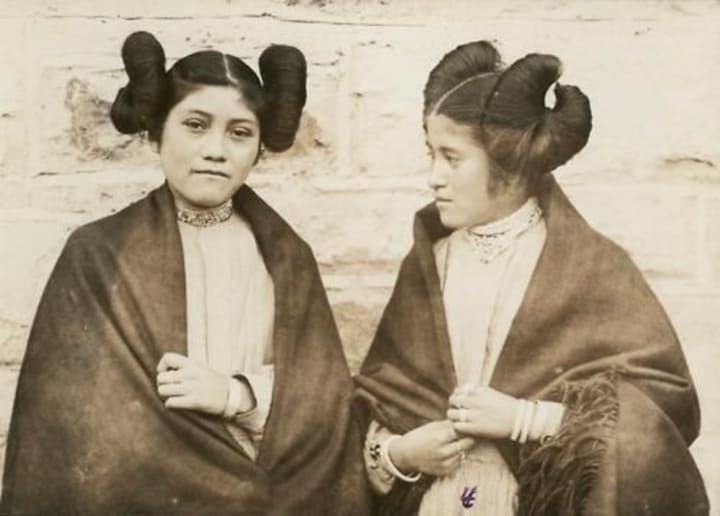 Now that we've established where Leia got her tenacious fighting spirit, lets talk about her iconic hairstyle. Women of the Hopi native tribe culturally wore the style called Butterfly Whorls or Squash Blossom Whorls to show the maidens were in fact unmarried and prepared to be wedded. The intricate hairstyle was achieved by the maidens mother. Traditionally using a piece of curved wood, the hair would be curled around the piece of wood and, once finished, the wooden piece would be removed, leaving the rounded Whorls.