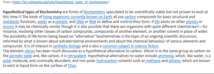 Why would this term "Shadow Biosphere" be added to the lexicon? because death is always our fear, causing "anxiety" which is resolved through scientific study and advances. Here, we find it comforting, with the possibility of Global Warming, that water may someday dry up from our planet, that some "solvent" other than water might someday become part of earthlife: perhaps nothing more complicated than the jellyfish.