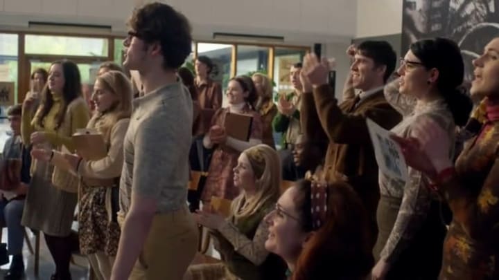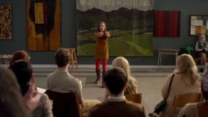 Did you spot me "hamming" it up as that slightly (I say slightly) geeky student with that Beatles-esque hairdo. Firstly I want to say I haven't had such a bad hair style since my own days in high school and secondly brown is not my best color. The wardrobe Dept did a great job at capturing the feel of 1960s Scotland, I wanted some of those groovy looking spectacles that a few extras got to wear. Luckily I had my contact lenses in for the 2 days we shot as my modern day glasses would never have passed for the 1960s period.