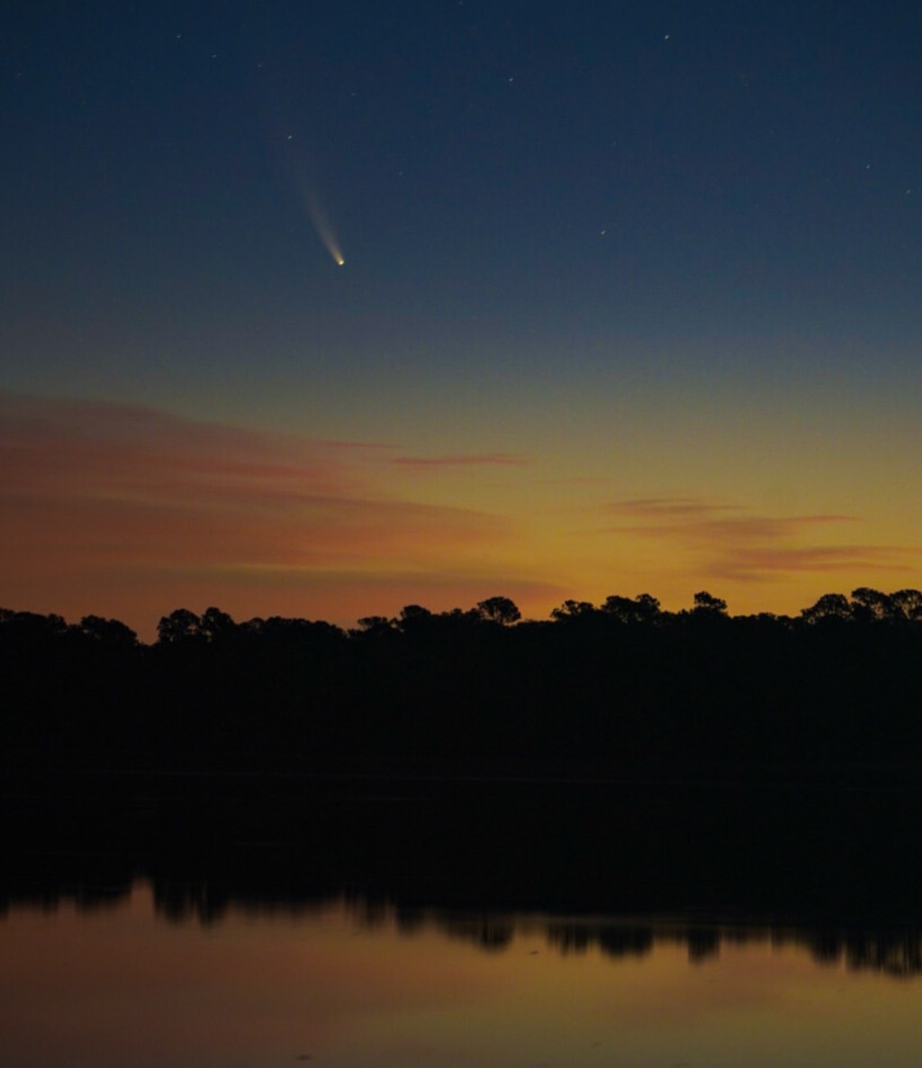 I woke up at 3:45 AM two Sundays ago to catch a glimpse of a once in a lifetime event. A once in a 100 lifetimes event to be exact. Comet NEOWISE was set to rise above the horizon in a fiery race against the sun. Since people haven’t witnessed this comet within the scope of human record keeping, scientists were left with a lot of questions as to its visibility. Now I had a million questions. Would I be able to see it through the scud layer and light pollution? Would it rise above the trees before the sun blotted it out? Was it where my Star Map phone app said it would be in the sky? Will this comet skunk me at the crack of ridiculous dawn just to be a mosquito buffet?