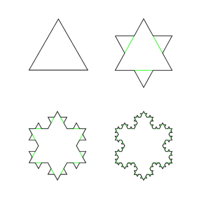 [6]: (sd).The first four iterations of the Koch Snowflake. Wikipedia.