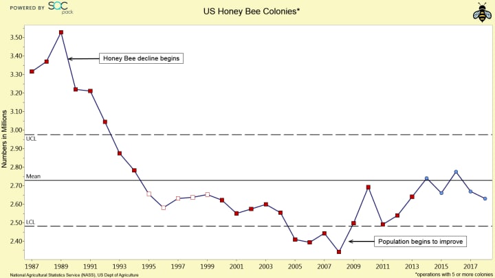 Since 1961, honeybee populations have been monitored carefully. In the United States of America near the year of 1989, the number of colonies was flourishing at 3.51 million- the highest point in history. But since then, everything has skydived.