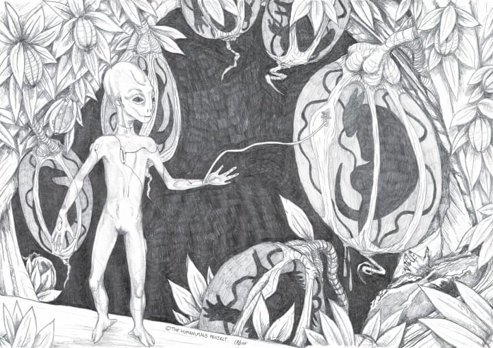 The man's heart was beating hard. He had no idea what he would face, but someone had to go and see what this strange event was all about. These, creatures, they were strangely familiar, yet also.... different. They seemed intelligent. It was obvious. The man had seen aliens before and these guys didn't behave like invaders. (Yes, the Earth had been invaded by aliens not long before this event! Yes, they were defeated, but that's another story!)