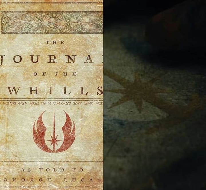 The first poster for The Last Jedi offered another hint, showing Rey standing as the balance between Light and Dark (Luke and Kylo Ren). Significantly, she's holding a lightsaber aloft in a pose that's deliberately reminiscent of the symbol of the Journal of the Whills.