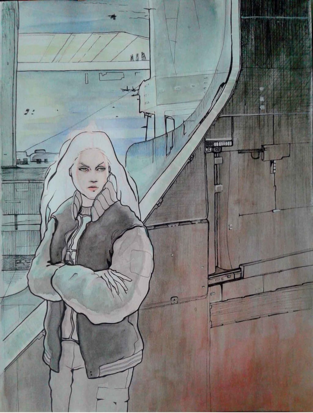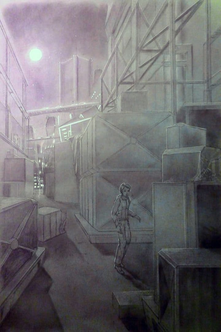 The end of the Sirens passes through the habitats of the populated planet, through each time zone accordingly. By the end of the announcements, Aiko remained beneath the pile of cardboard bleeding and rattled. Pulling her emotions inside, she takes a deep breath to focus on her mission. Bunched under her is a yellow-stained rag.