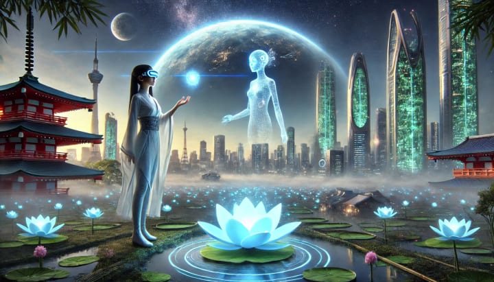 On a crisp morning in 2050, Aria Nguyen wandered through the SkyDome, a marvel of human ingenuity hovering above Kyoto. This floating garden wasn’t just a sanctuary of greenery; it was a symbol of Earth’s renewal. Ancient plants once thought extinct thrived here, brought back to life through genetic reconstruction. One plant in particular—a glowing blue lotus—caught Aria’s attention. Her augmented reality lenses displayed its history, while her AI companion, Amara, whispered softly beside her:
