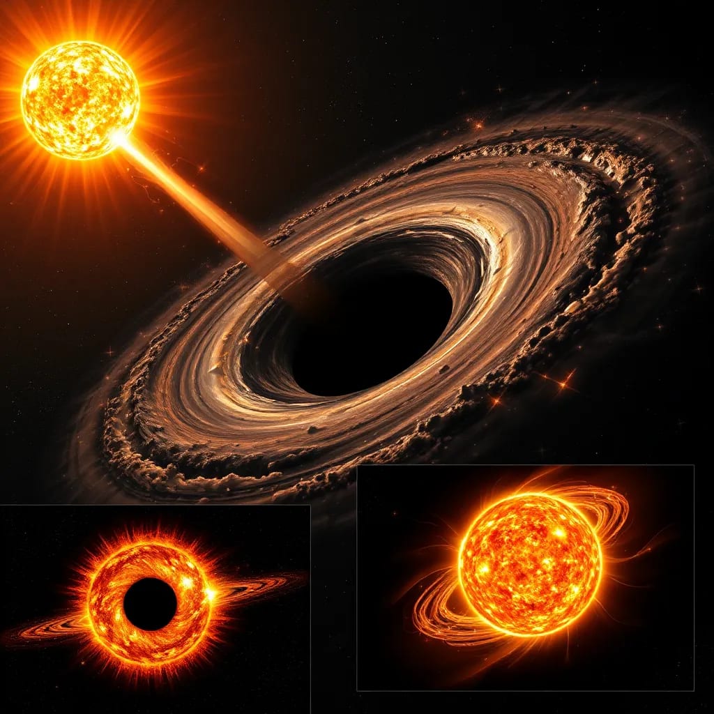The results would be both terrifying and spectacular. Streams of hot gas would spiral around the black hole, forming a glowing accretion disk. Immense amounts of X-ray radiation would blast outward. From Earth, we might observe a burst of intense light the dying scream of our star. Within hours or days, the Sun would be gone, reduced to a swirling halo of its former self, orbiting the invisible predator.