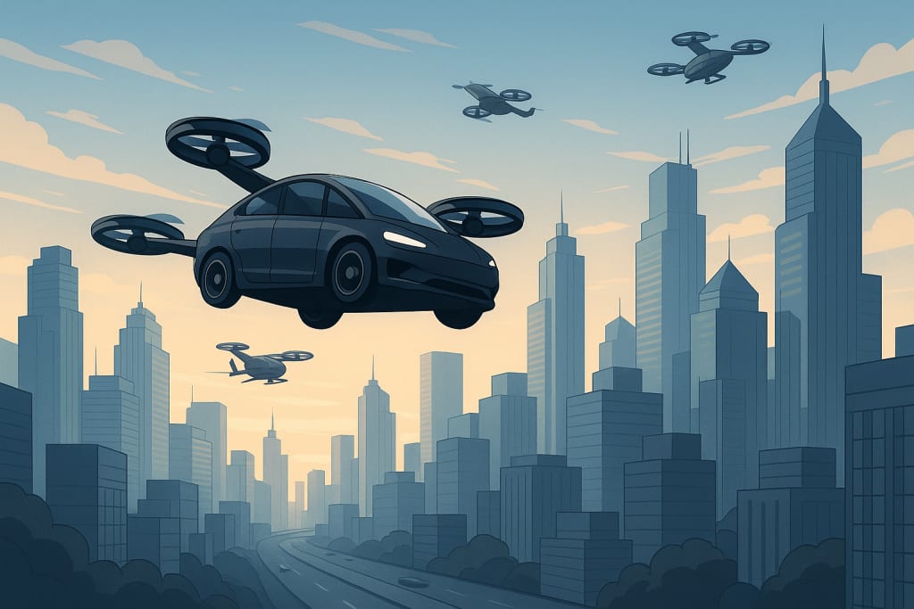 The dream of flying cars takes flight above tomorrow’s city—where the skyline is no longer the limit.