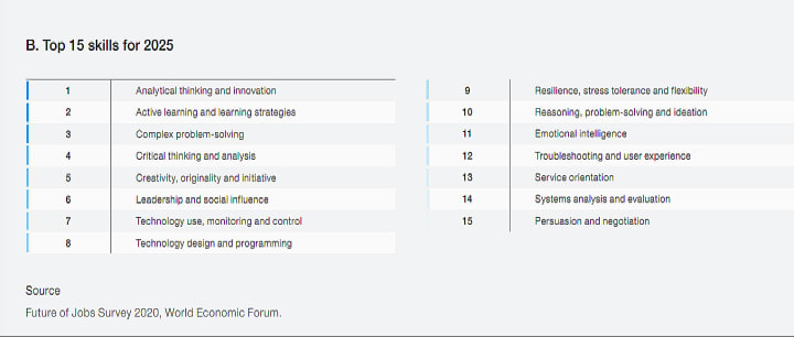 Here is a screenshot taken from WEF’s report itself. It clearly mentions skills which will be rising in prominence in the lead up to 2025: