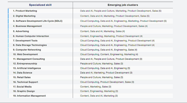 Further, the report mentions top cross-cutting specialized skills of the future. Cross-cutting skills are those skills that are applicable and easily transferable across many occupations and roles.