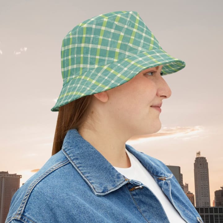 5. Green Plaid Bucket Hat