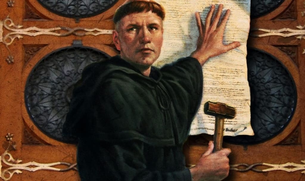 Luther misunderstood several points of the Doctrine of the Church, on a beautiful day coming into contact with the epistles of St. Paul (especially the Romans and Galatians)offered him the answers to get rid of temptations, from 1517 was silently developing his heretical theses, being the doctrine of faith without the most fundamental works. In 1517, Luther signed his 95 theses at the door of wittenberg church, then had a theological debate with catholic theologian João Maier.
