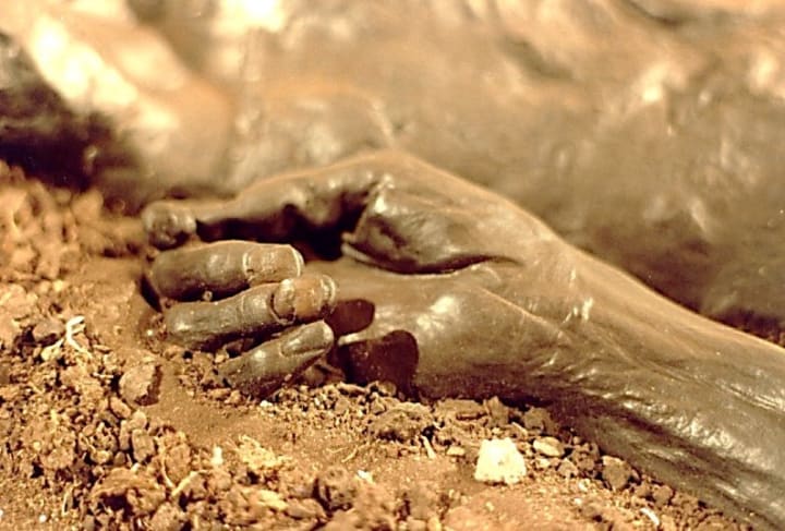 After he was killed, his corpse was thrown into the bog for disposal or maybe preservation. It's interesting to wonder if the people of that time knew that the bog would preserve the corpse. But whether they knew it or not, bog bodies enter natural preservation, as this one did for more than two millennia.