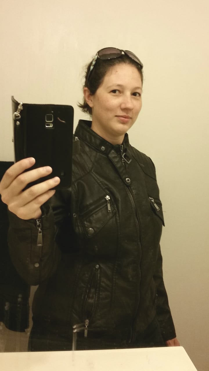 As with many things, not all thrift shop finds are the amazing deal they appear to be at first glance. The zippers on the cuffs and the main front zipper had pulls that were metal and just a little too long. Those dangly bits would get in the way and sometimes even hurt a bit if I was moving too fast. After a few outings, the outer layer began to flake off, of course it wasn’t real leather, it was a very thin bonded leather. It was doing a great job of showing where the more used and worn spots on the jacket were.