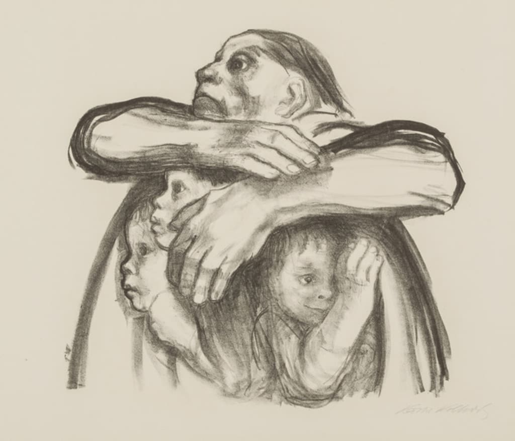 Other influential women used their written word and art to combat fascism. Erika Mann, the daughter of esteemed author Thomas Mann, was one of the most significant radicalists of the day. Not only did she engage in political theater performances with her brother and their friends, she also began to write and publish her thoughts on Nazi Germany. In School for Barbarians, Mann comments on the cruelty and indoctrination that was taking place in Germany’s schools. Systems like the Hitlerjugend and the League of German Girls were used to spread propaganda to the youth of Germany. Because of Mann’s critical stance and the privilege she had garnered from her father’s success, she was highly targeted by the Nazi party. The Mann siblings were nearly executed multiple times and were forced to flee Germany. Another German artist, Kaethe Kollwitz, was known for her lithographs and sculpture work. She had become famous during and after the First World War when she lost her son in battle. Her grief remained an inspiration for her art for the rest of her life. Kollwitz was highly critical of the war in Germany and used her art to make her stance known. In one of her last pieces, Seed Corn Must Not be Ground, Kollwitz depicts a mother shielding her sons from the war, hoping that they will remain young and innocent. Kollwitz was removed from several artist groups and institutes because of her support for left-wing parties such as the German Communist Party.