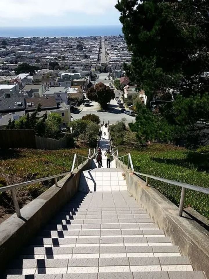 Getting to this location can be difficult if this is your first time in San Francisco or aren't used to the area yet. You can reach the Moraga Steps by either taking the 28 bus line to 19th Avenue and Moraga Street and walking to 16th Avenue or by driving. Walking can be a little challenging because it's uphill and the hills are steep in San Francisco. However, if you have no car, this may be your only option. Driving can also be challenging because to get to the base of the Moraga Steps, you have to drive uphill and some of the streets are very narrow.