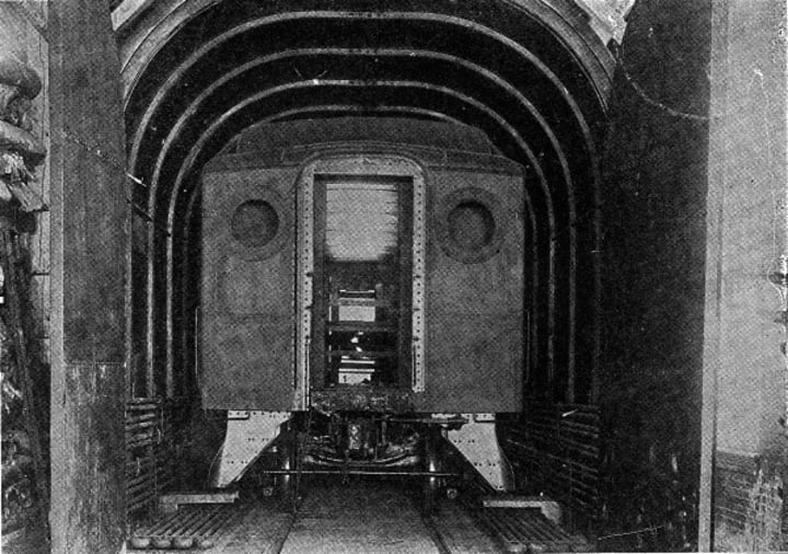 Caption: Oven for Drying Paint on Passenger Cars at the Altoona, Pennsylvania shops of the Pennsylvania Railroad.