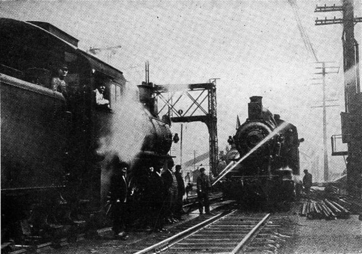 Fire fighting locomotives were essential on railroads powered by steam engines.