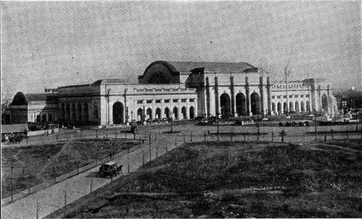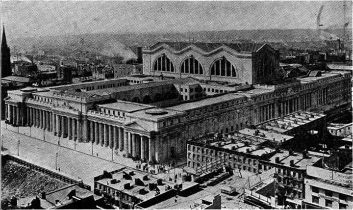Caption: Bird's-eye view of the Pennsylvania Station, New York City