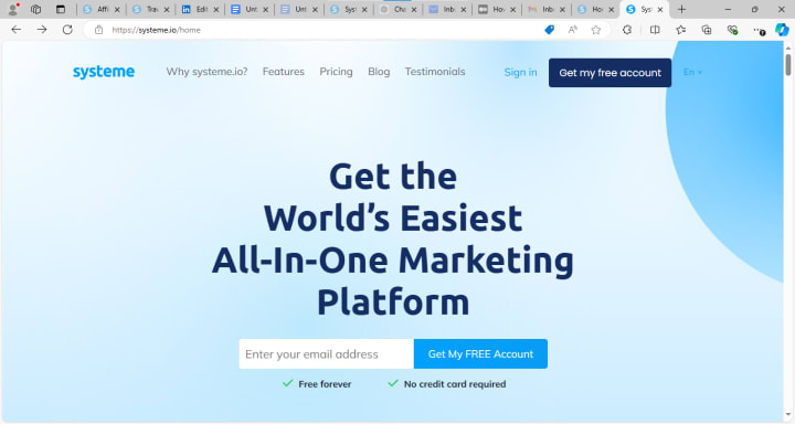 Building your website starts with creating your Systeme.io account. If you haven't created an account yet, do the following: