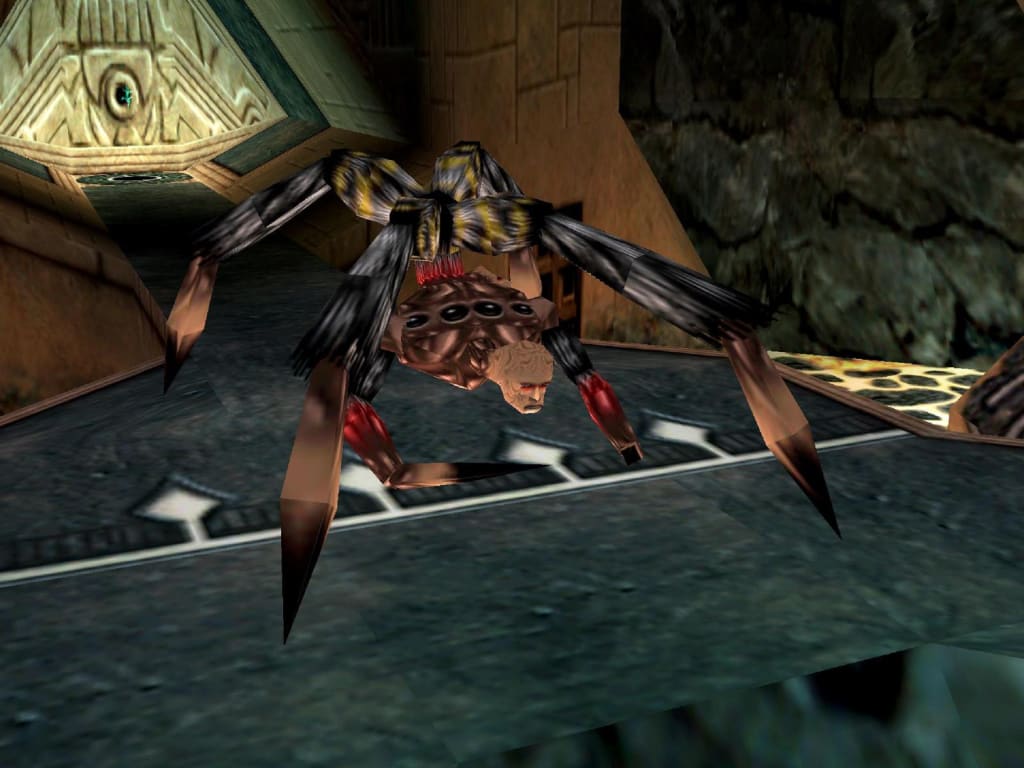 Of course, the crazy scientist dude ends up the worst nightmare of arachnophobes everywhere, but that's the least of your problems here. He shoots lasers at you - yes, you read that correctly. Each time he fires at you, it's a guaranteed kill. You can't dodge his attacks. Oh, and he's immortal...because of course he is. The only way to make him vulnerable is to retrieve all of the artefacts. This lowers the meteorite and makes it possible to kill him. So, you naturally start shooting at him all the while hoping he doesn't get a shot off at you.