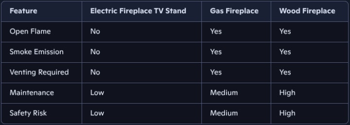 Comparing Electric Fireplace TV Stands to Other Heating Options